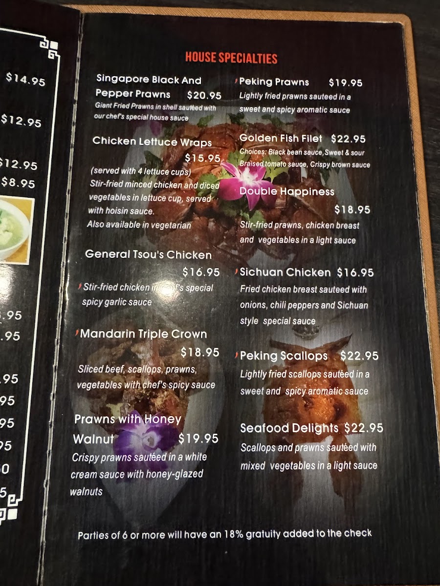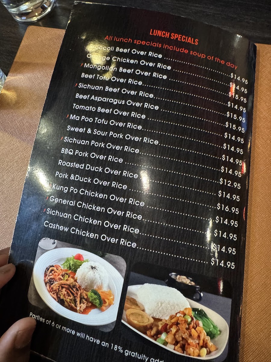 As you peruse the menu, prepare to be captivated by an array of culinary delights. Try the Shrimp Fried Rice, a tantalizing combination of succulent shrimp, perfectly cooked rice, vibrant onions, and seasonal vegetables all expertly tossed together. Priced at just $14.95, it’s a dish that will satisfy both your palate and your wallet. For those craving something spicy, don't miss out on the Sichuan Chili Cucumber Salad for $8.95, which strikes the perfect balance of heat and freshness. And for a real showstopper, the Honey Barbecued Spare Ribs ($13.95) offers a sweet, sticky glaze that melts in your mouth.